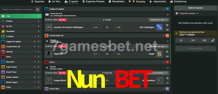 A aposta Nun Bet oferece aos jogadores a experiência mais conveniente de apostas em eSports!